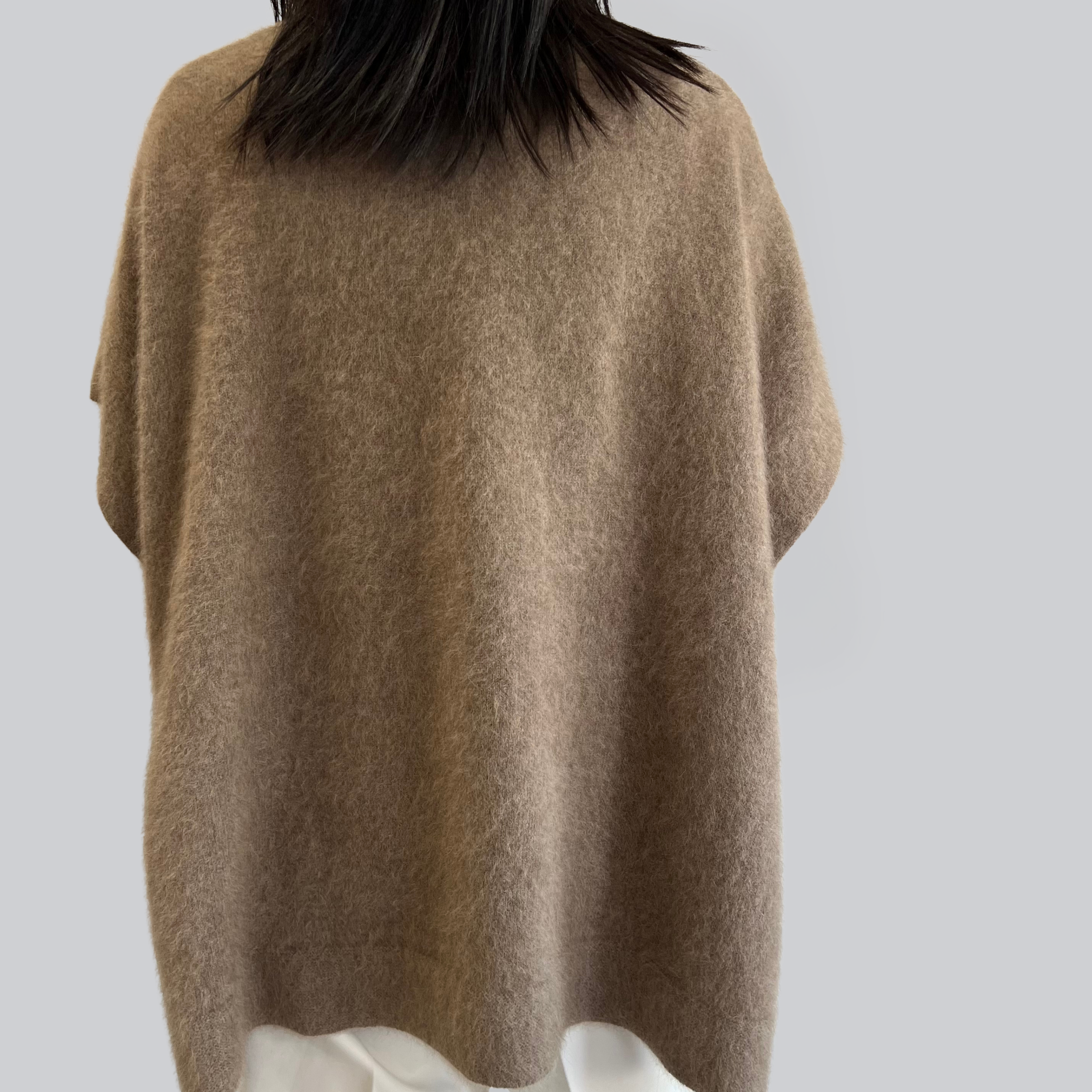 Poncho CTPLAGE camel : chaleur, fluidité et style décontracté.