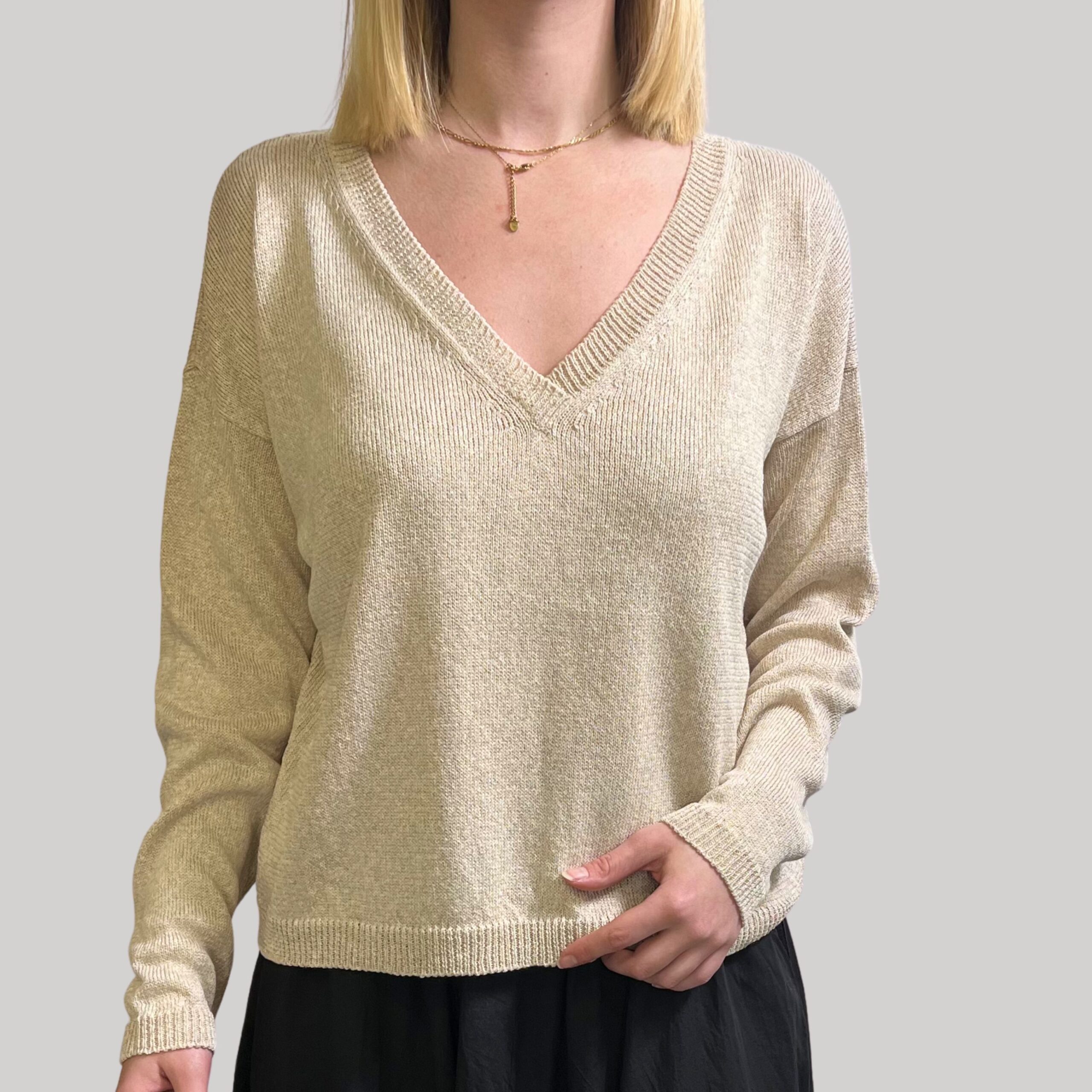 Le col V apporte une touche féminine et élégante qui met subtilement en valeur le décolleté. Sa coupe droite légèrement courte crée une silhouette moderne et équilibrée.